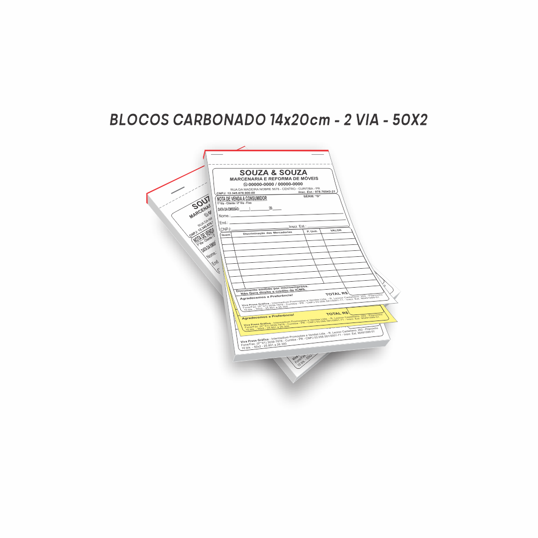 Bloco 14x20 cm - 50x2 vias - papel copiativo